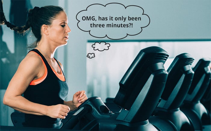 Yes. And no, the treadmill isn’t broken. Time just operates differently on a moving belt. Three minutes on the treadmill is equivalent to approximately 45 minutes of emotional distress. You’ve already considered quitting twice. Hang in there.