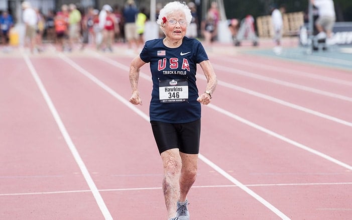 What do most people do after turning 100? Julia Hawkins runs and sets records.