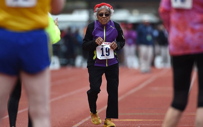 What do most people do after turning 100? Julia Hawkins runs and sets records.